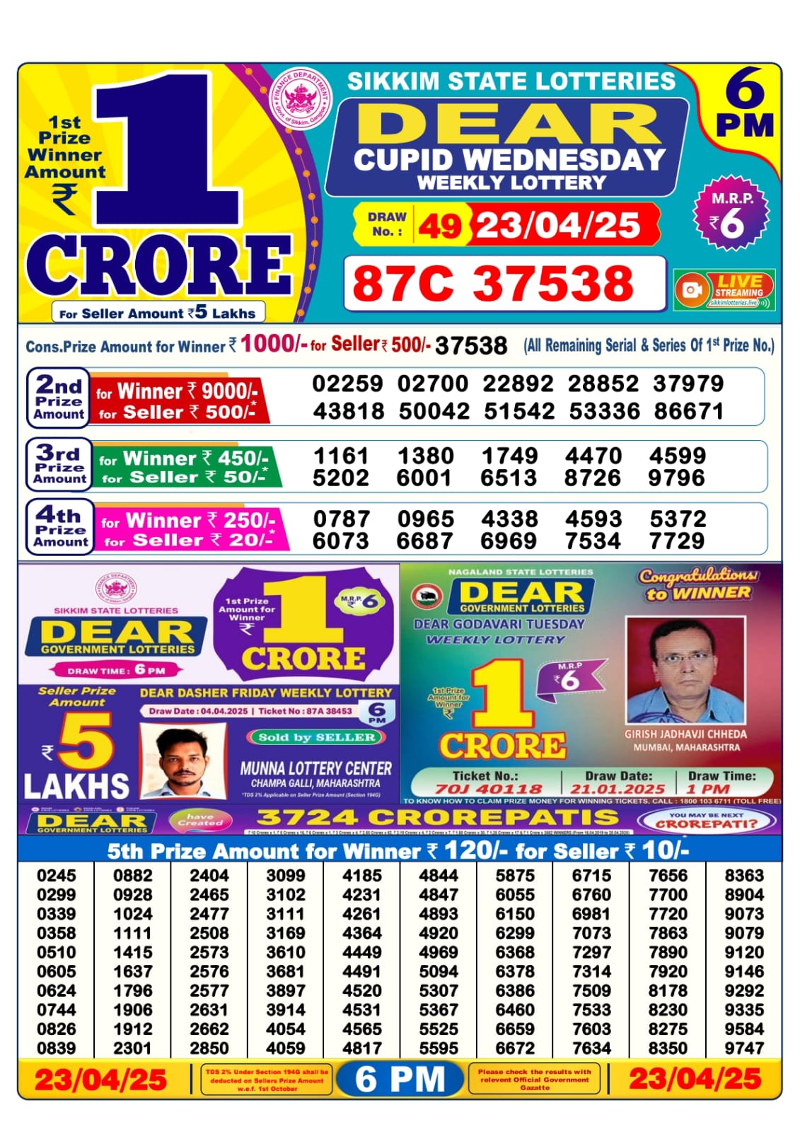 Lottery sambad today 6PM 23-04-2025