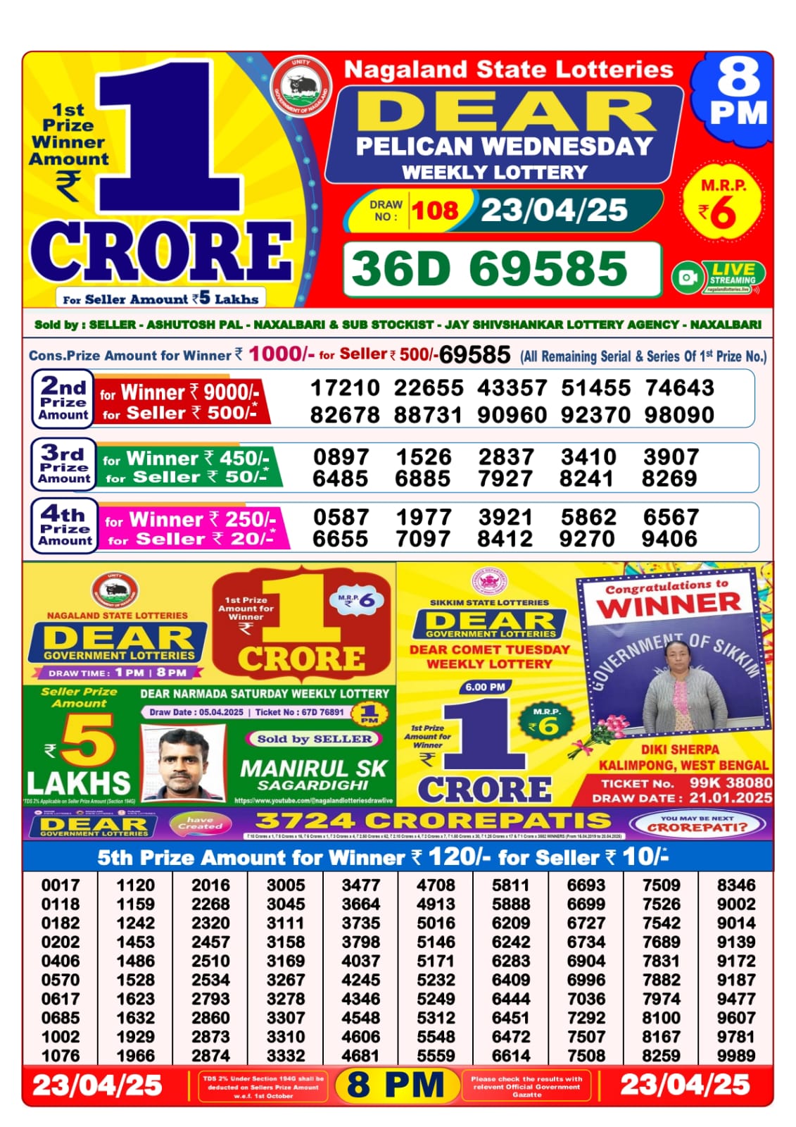 Lottery sambad today 8PM 23-04-2025