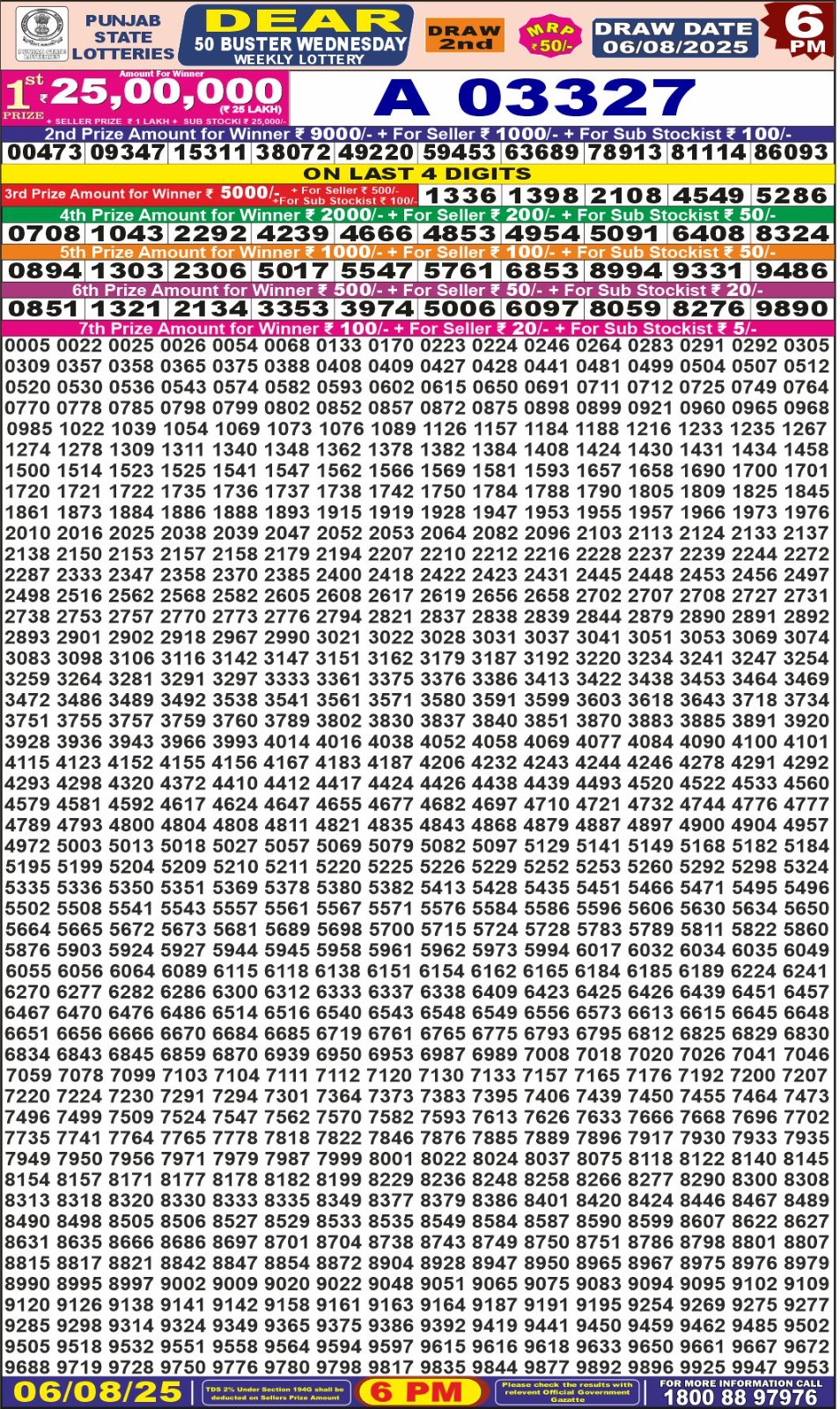 Punjab State Dear 50 Lottery Result 06.08.25 | Full Prize List Today 6pm 06-08-2025 Leave a Comment on Punjab State Dear 50 Lottery Result 06.08.25 | Full Prize List Today 6pm