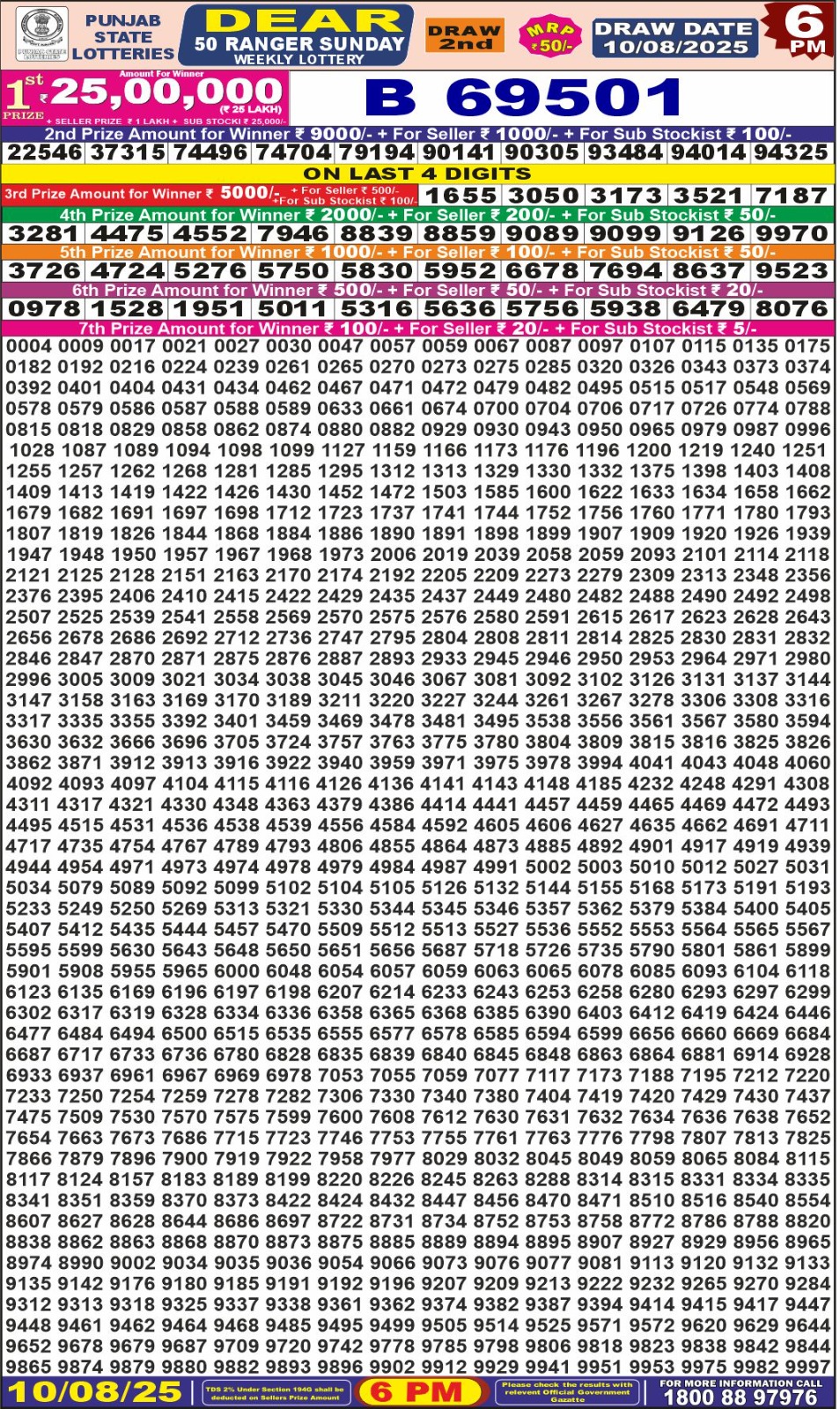 Punjab State Dear 50 Lottery Result 10.08.25 | Full Prize List Today 6pm 10-08-2025 Leave a Comment on Punjab State Dear 50 Lottery Result 10.08.25 | Full Prize List Today 6pm