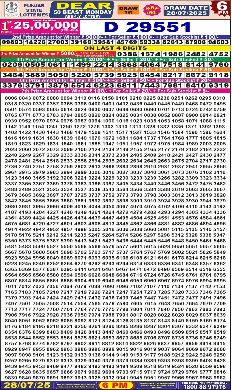 Punjab State Dear 50 Lottery Result 28.07.25 | Full Prize List Today 6pm 28-07-2025 Leave a Comment on Punjab State Dear 50 Lottery Result 28.07.25 | Full Prize List Today 6pm