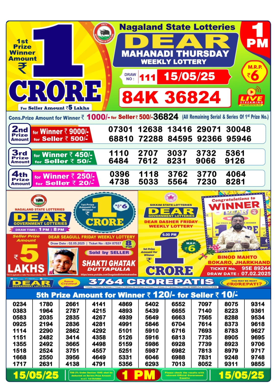 0 Comment on Lottery sambad today 1PM 15-05-2025