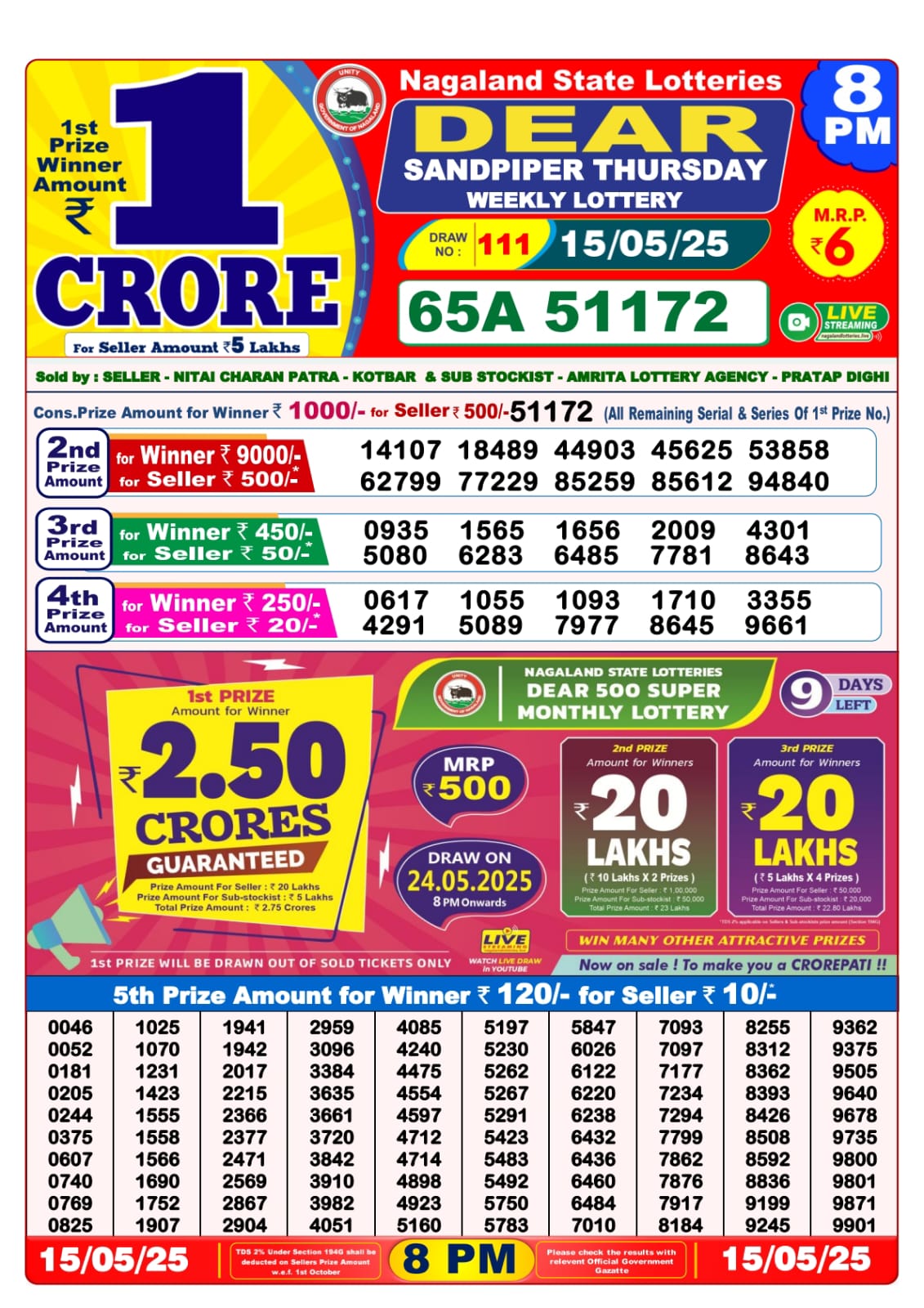 0 Comment on Lottery sambad today 6PM 15-05-2025