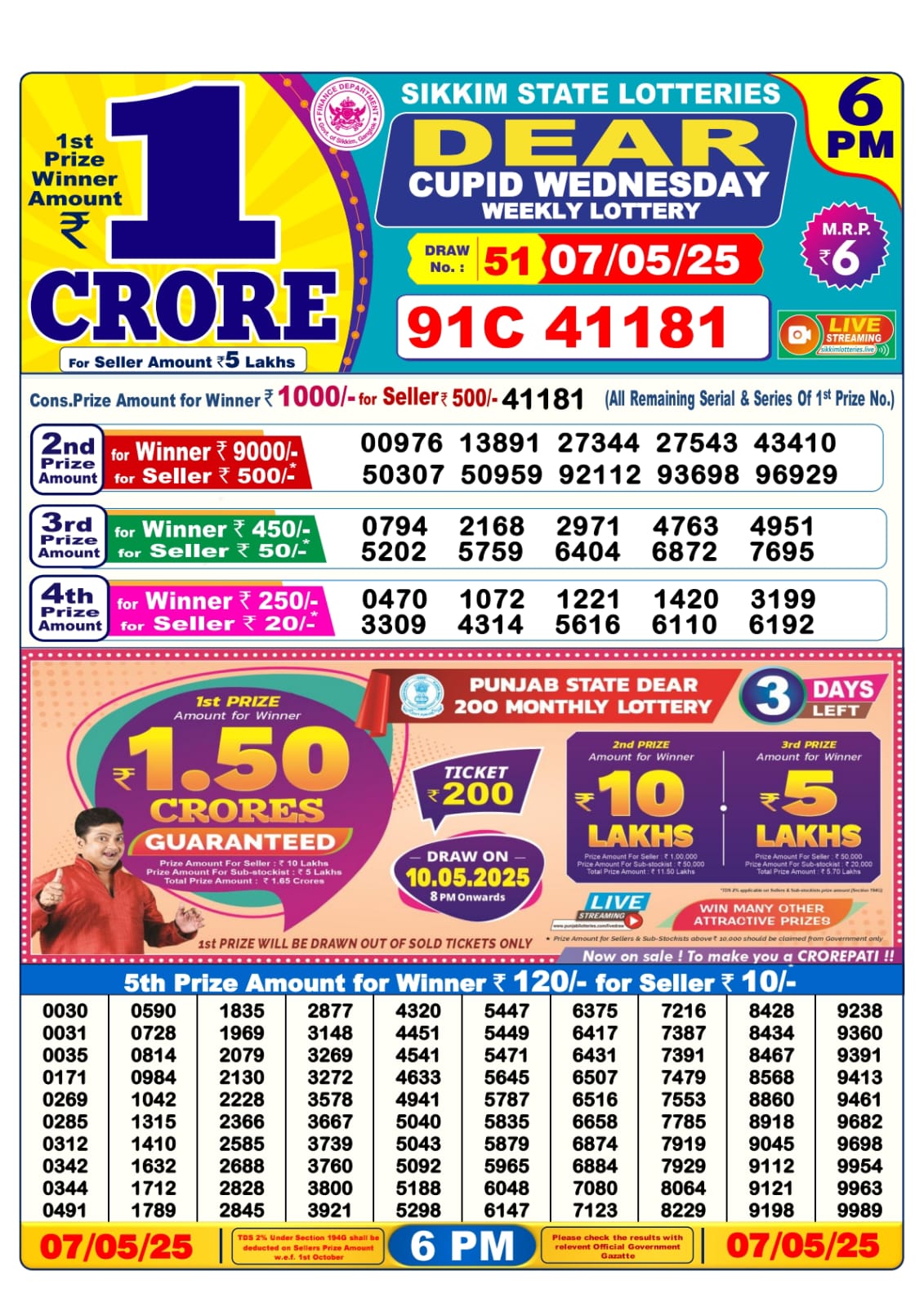 0 Comment on Lottery sambad today 6PM 07-05-2025