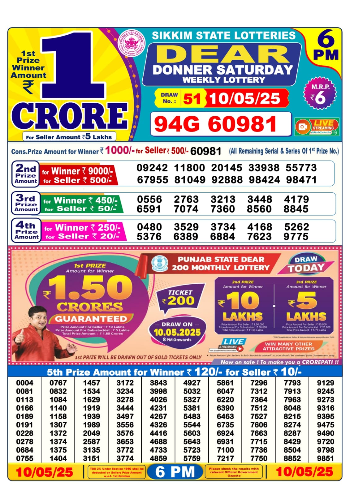 0 Comment on Lottery sambad today 6PM 10-05-2025