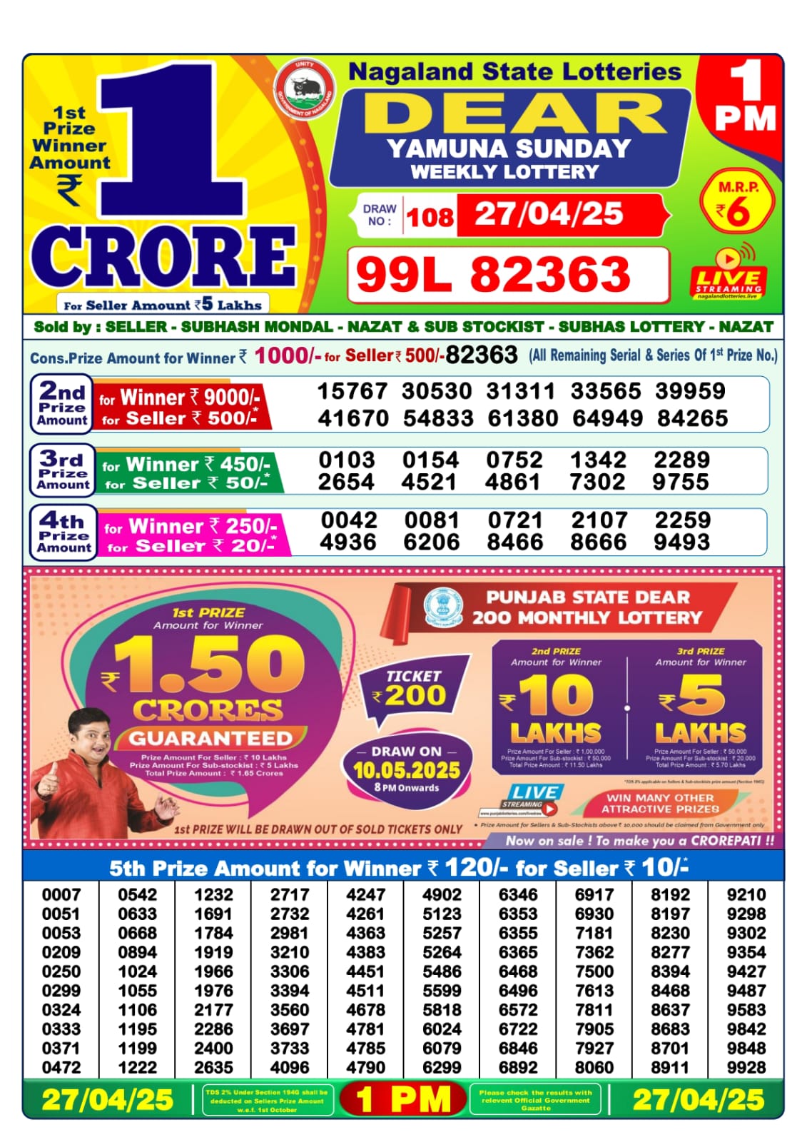 0 Comment on Lottery sambad today 1PM 27-04-2025