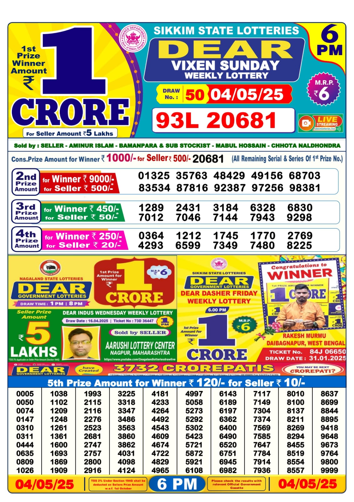 0 Comment on Lottery sambad today 8PM 04-05-2025