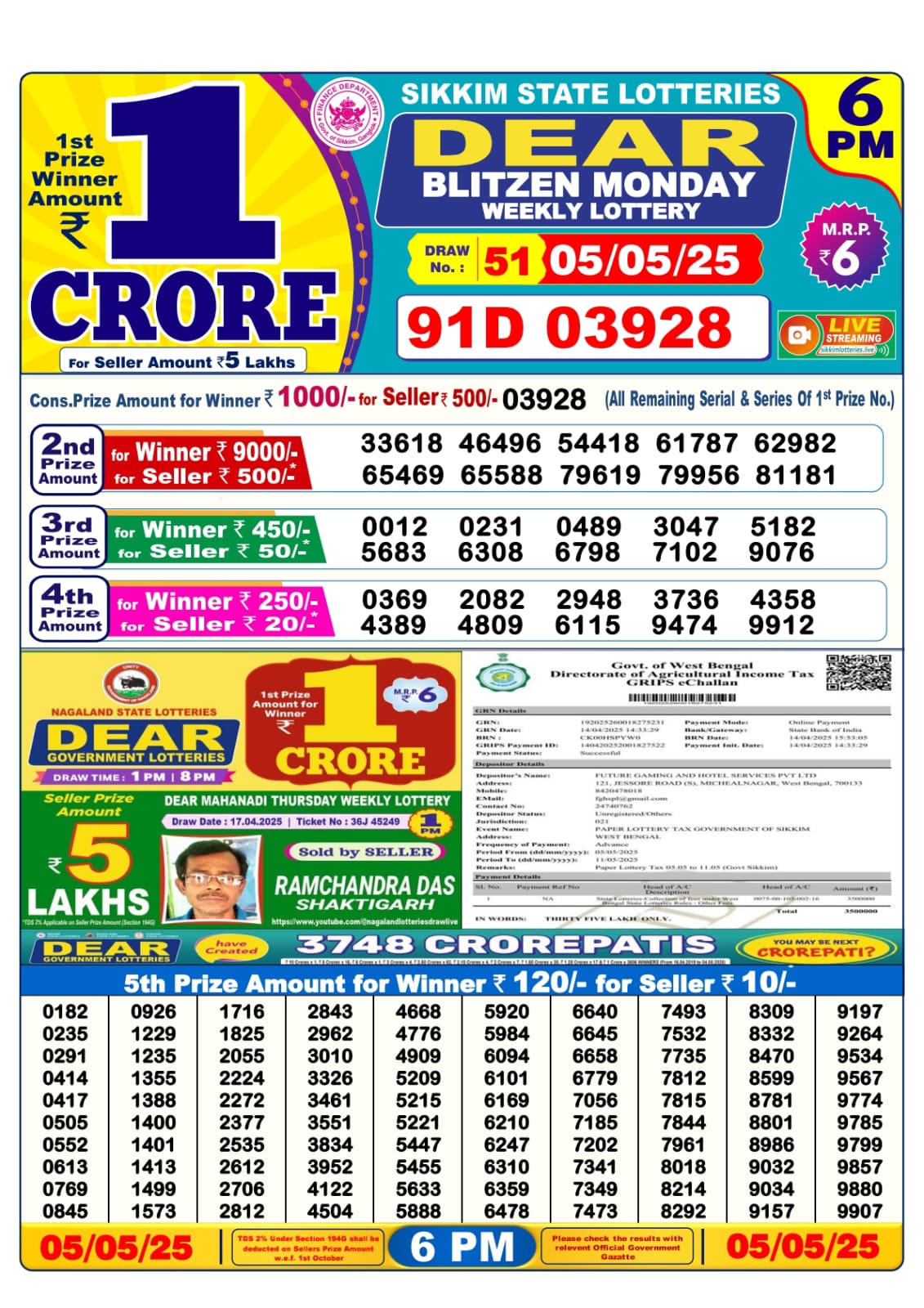 0 Comment on Lottery sambad today 6PM 05-05-2025