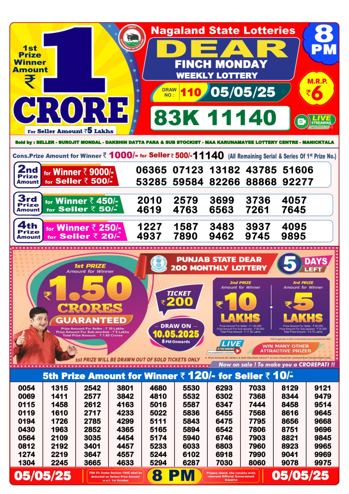 0 Comment on Lottery sambad today 8PM 05-05-2025