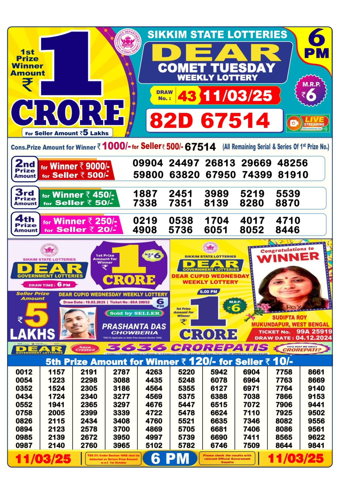 0 Comment on Lottery sambad today 6PM 11-03-2025