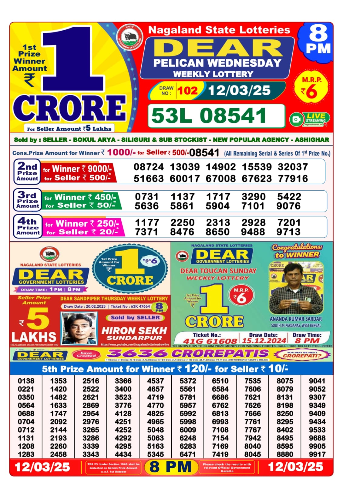 0 Comment on Lottery sambad today 8PM 12-03-2025