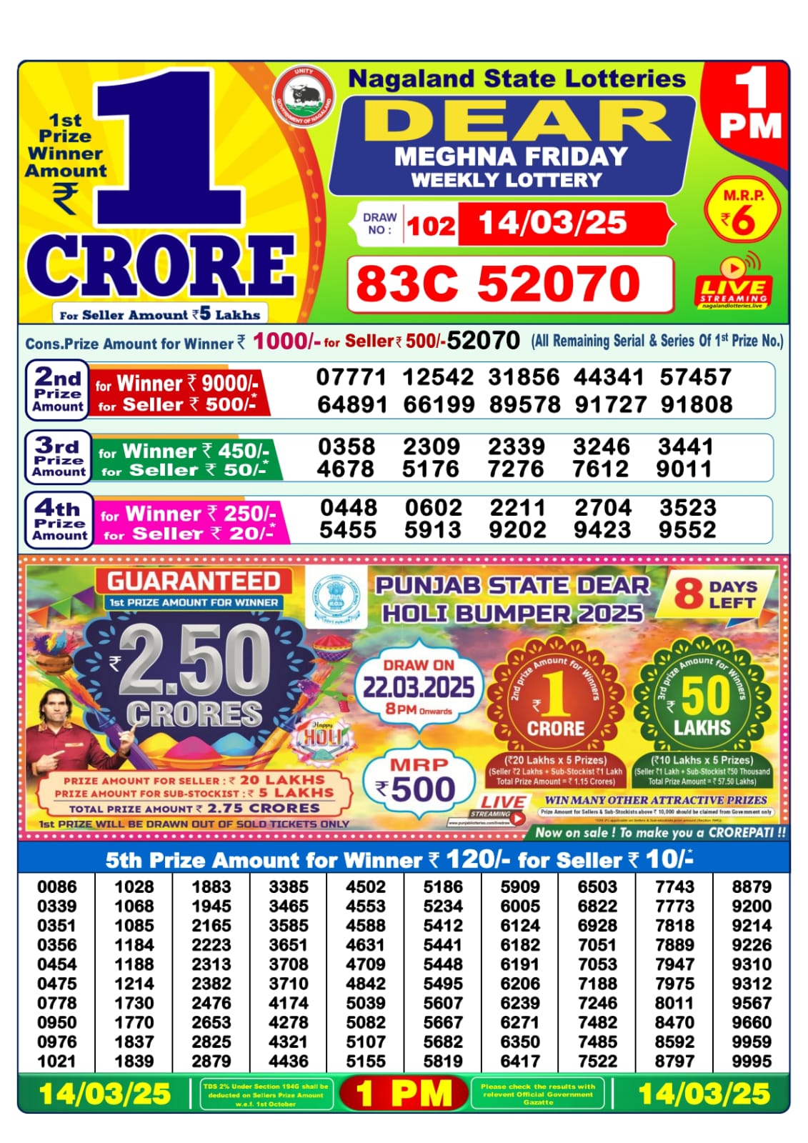 0 Comment on Lottery sambad today 1PM 14-03-2025