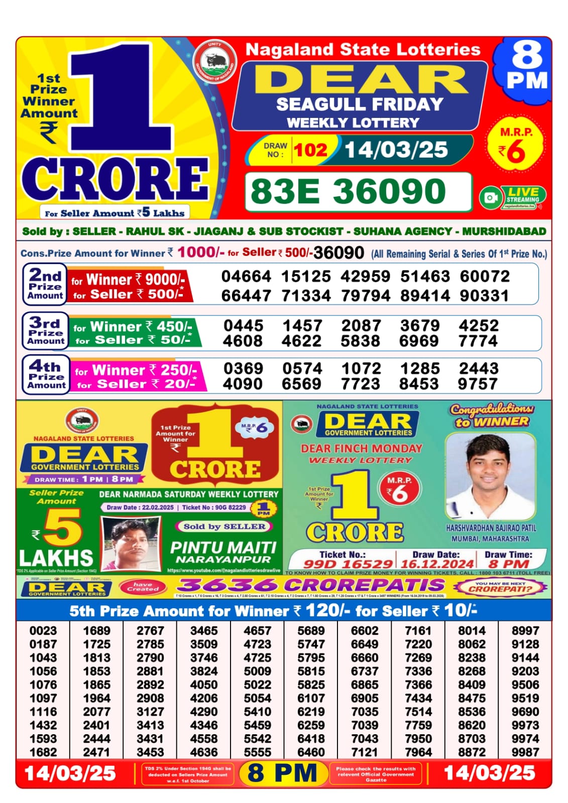 0 Comment on Lottery sambad today 6PM 14-03-2025