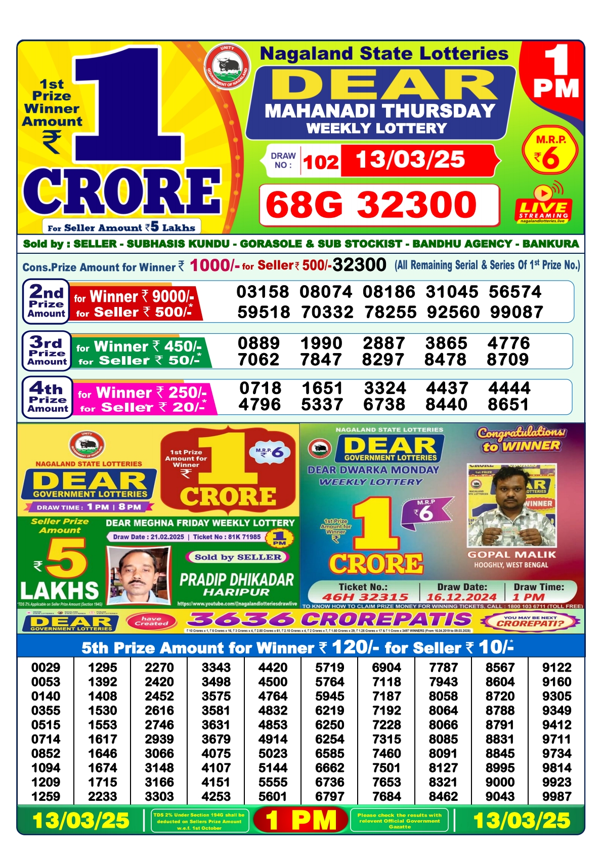 0 Comment on Lottery sambad today 6PM 13-03-2025