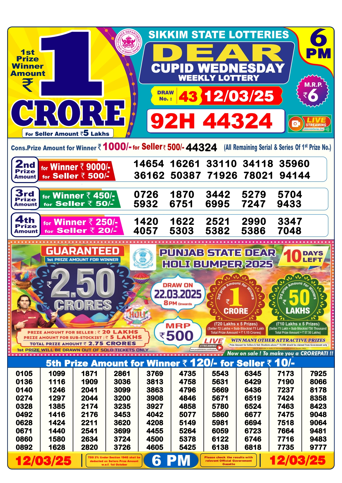 0 Comment on Lottery sambad today 6PM 12-03-2025