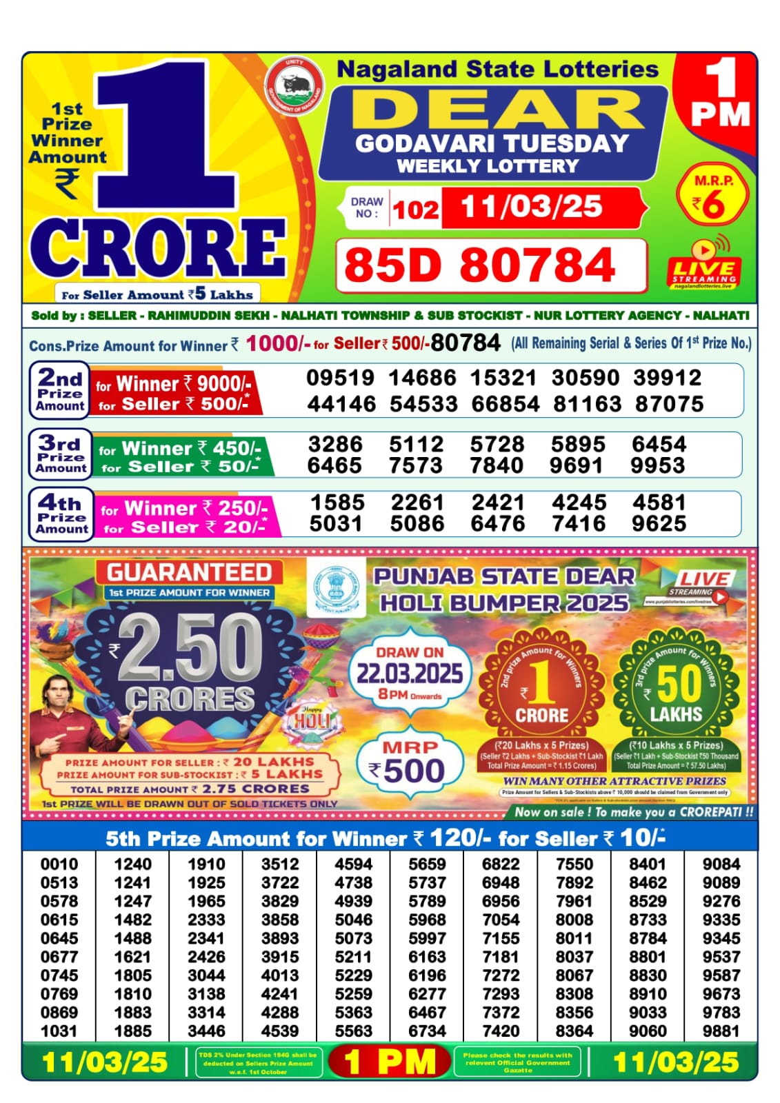 Lottery sambad today 1PM 11-03-2025