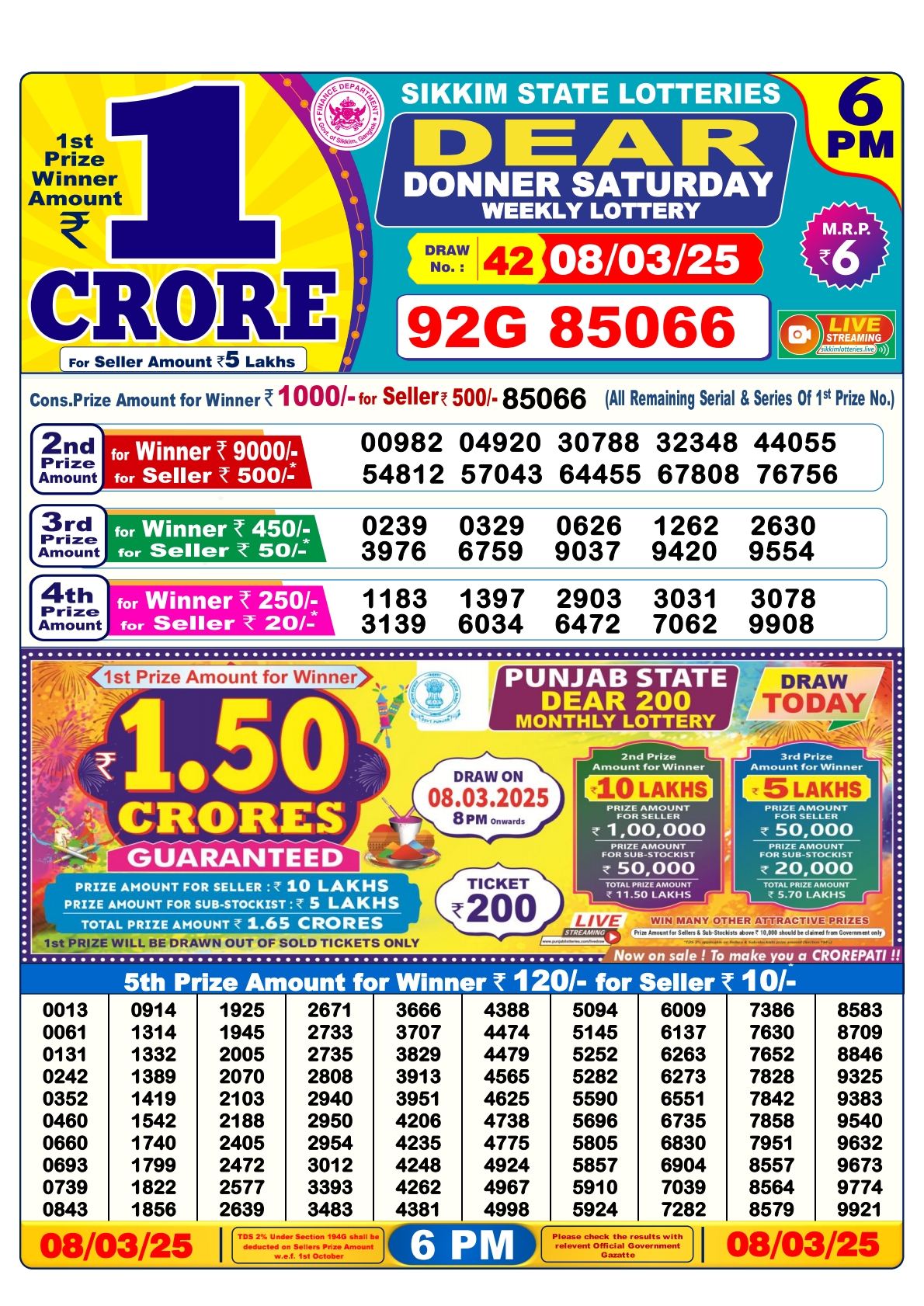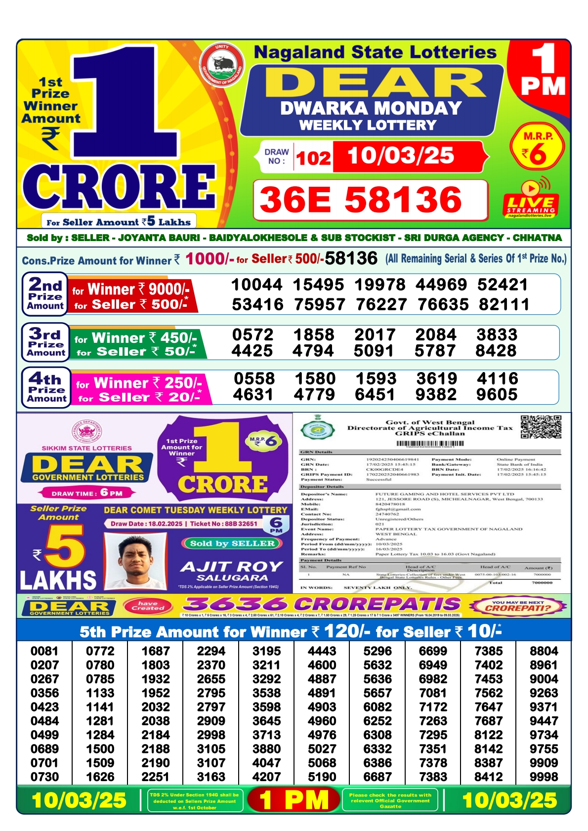 Lottery sambad today 6PM 10-03-2025
