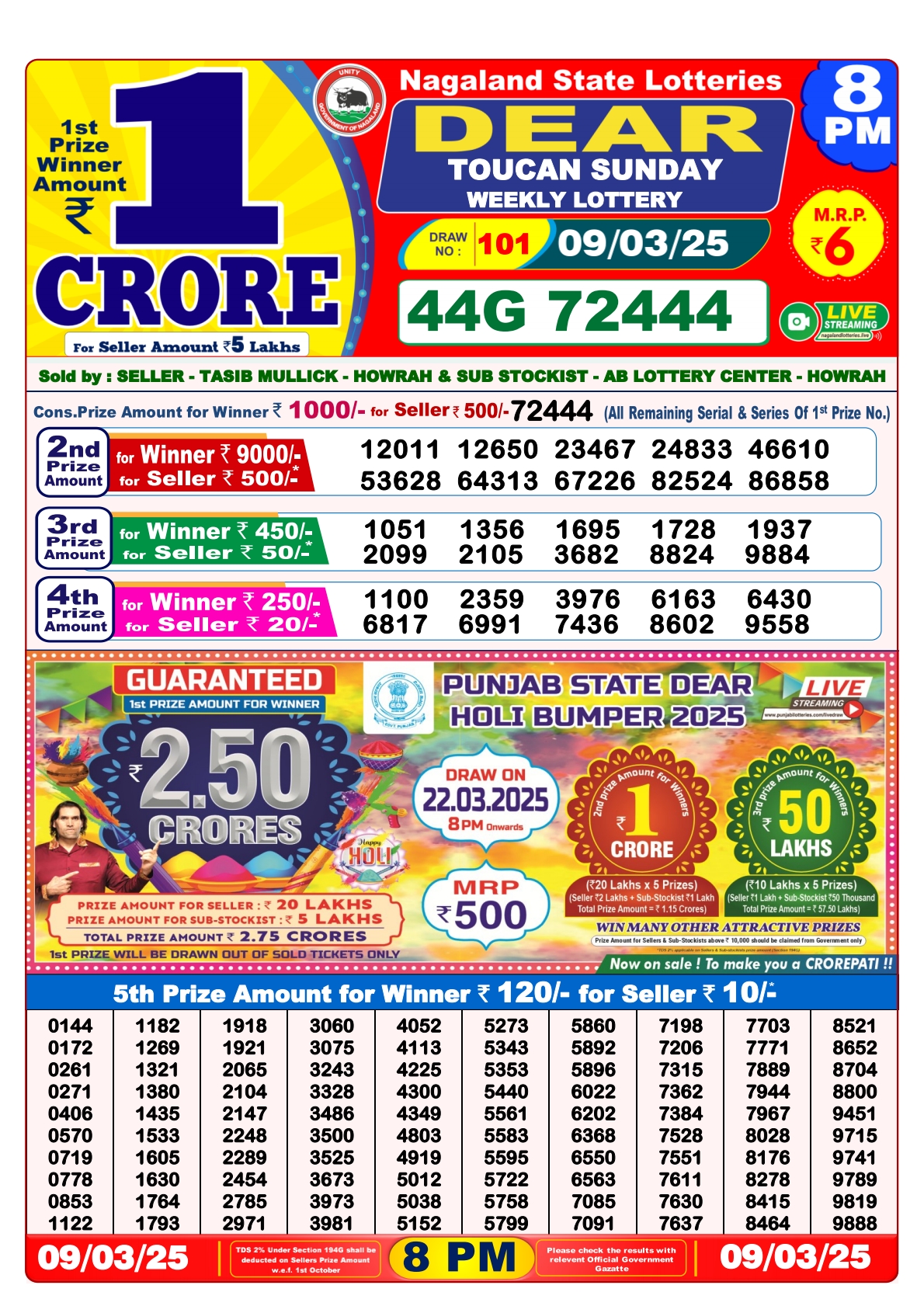 Lottery sambad today 8PM 09-03-2025