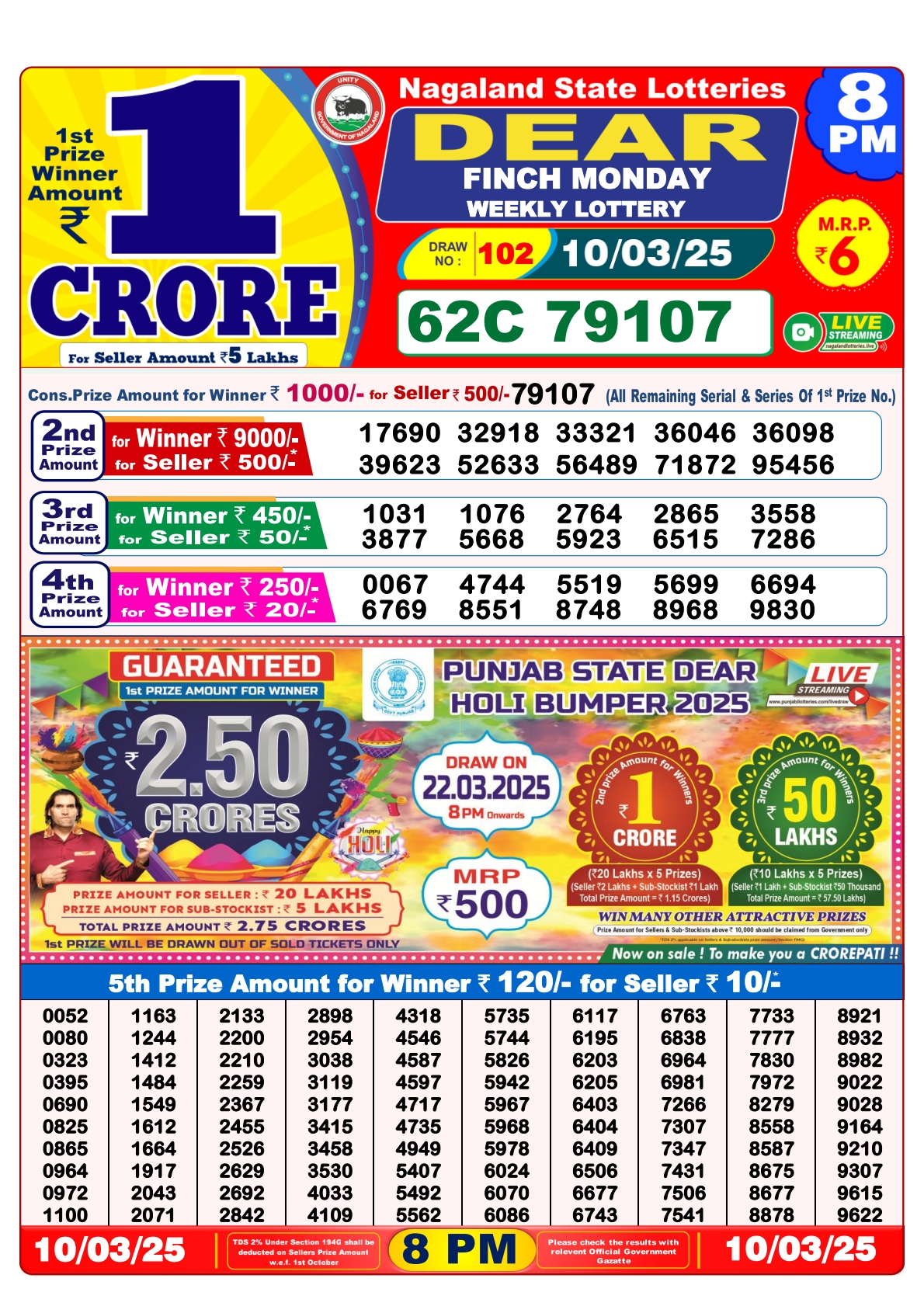 Lottery sambad today 8PM 10-03-2025